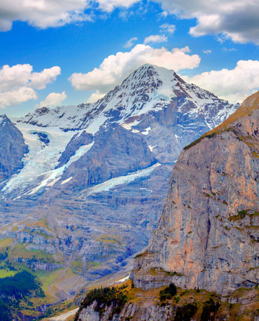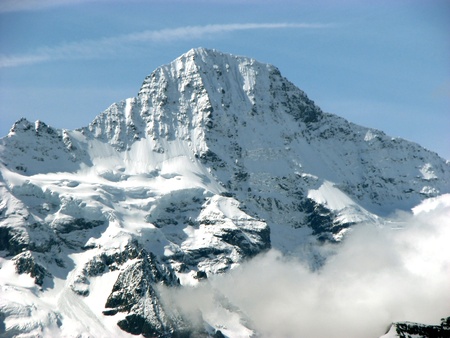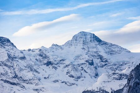 Snow mountain at summer day in Jungfrau, Switzerland.