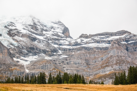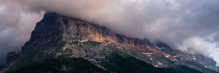 Misty Eiger Mountain, Bernese Swiss alps, view from Schynige Platte, Switzerland