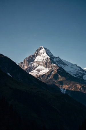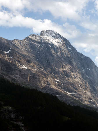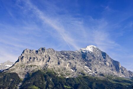 Eiger mountain captured up close famous landmark in Grindelwald, Switzerland.
