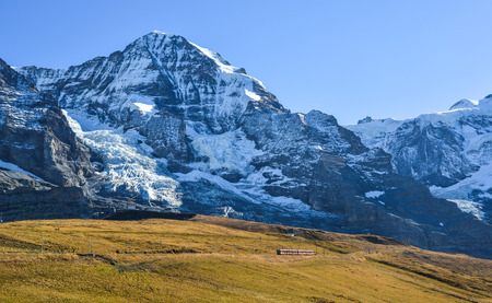 Close view of Jungfrau north face from Kleine Scheidegg, on Bernese Oberland, Switzerland.
