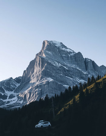 A picturesque view of a snowy mountain peak in the Swiss Alps.