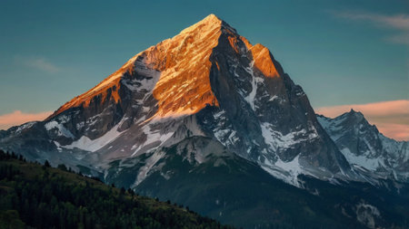 Panoramic view of Matterhorn peak at sunset, Zermatt, Switzerland
