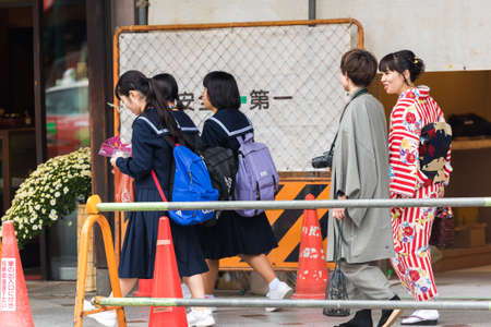 TOKYO, JAPAN - OCTOBER 31, 2017: Tourists on the city street. Copy space for text