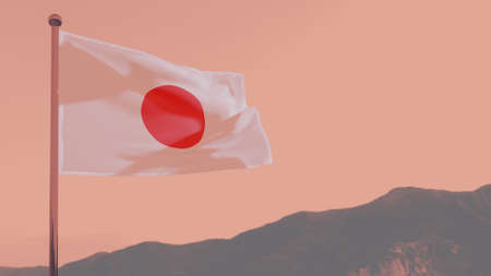 the flag of Japan in the wind on the background of the sunset sky. 3d rendering