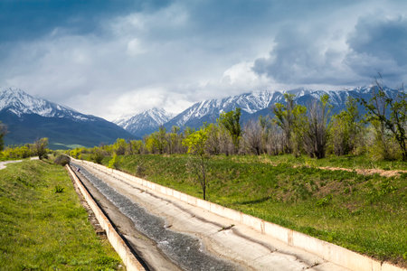 Landscape of mountains and lake in Kyrgyzstan, Central Asia