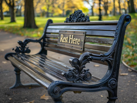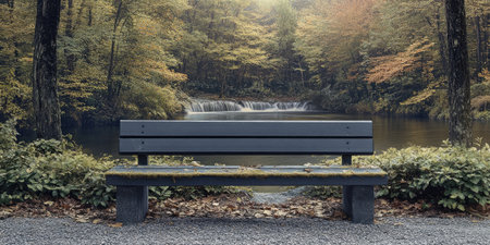 Peaceful park bench with autumn leaves