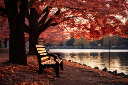 A parkbench at the park during autumn - Generative AI