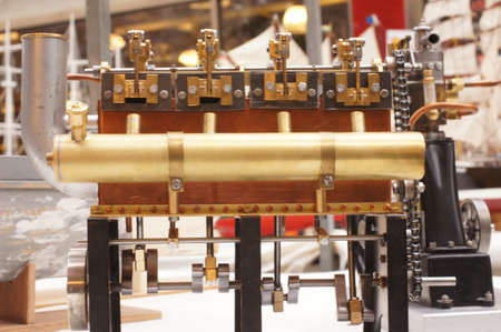 Turin, Italy - June 20, 2021: Ancient restored mechanical parts used for cars, at the automobile museum.