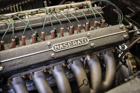 Pasadena, USA - April 24, 2016: Ferrari 250 TR V-12 engine on display at the 9th Annual Concorso Ferrari event.