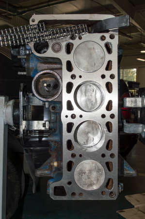 Engine valve car maintenance.The cylinder block of the four-cylinder engine. Disassembled motor vehicle for repair.