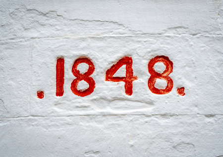 The engraved number 1848, painted red, marks the construction date of Cape Otway Lightstation, an iconic lighthouse along the Great Ocean Road in Australia