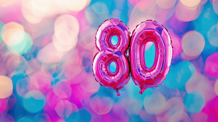 Celebrate a milestone with these stunning golden number 80 balloons, perfectly paired with elegant gifts and a warm bokeh backdrop for a joyful atmosphere.