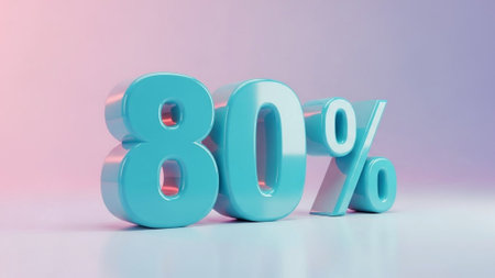 Title: showing title: turquoise glossy three dimensional number eighty percent symbol on gradient background. resolution use.