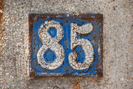 Close up surface texture of the Red container with eight number. Vintage background concept. Free space for text.
