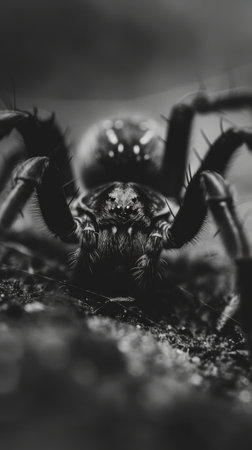 Extreme Closeup of a Black Wolf Spider, Showcasing Intricate Textures and Unique Morphology Details