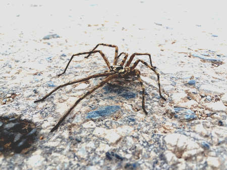 Huge spider walking on the road in evening.