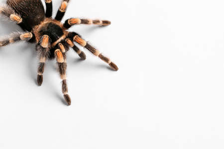 Scary tarantula spider on white background