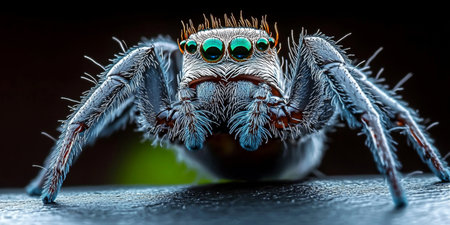 Stunning Macro Photography of a Spider with Four Emerald Green Eyes and Intricate Body Textures