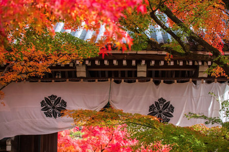 Beautiful colorful maple leaves in Eikando temple or Eikan-do Zenrinji shrine entrance in autumn, Kyoto, Japan. Famous travel destination for tourist sightseeing Kansai in fall season.