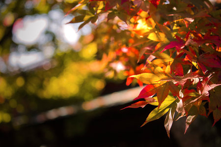 Maple leaf in fall season when sunshine in the park in Japan