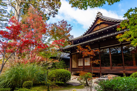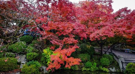 Autumn foliage garden and shrine building at Nanzen-ji Temple, Kyoto, Japan. The most beautiful season to visit Nanzen-ji temple is autumn.