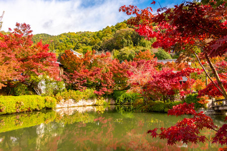Eikando temple or Zenriji temple Hojo Pond taken during autumn foliage season. Famous Buddhist temple in Kyoto, Japan