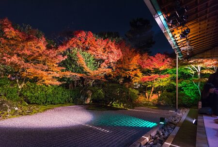 Route to view Kurodani Konkai Komyoji garden light up for stunning autumn leaf illusion at night, Kyoto, Japan. travel destination for tourist sightseeing Kansai for fall season.