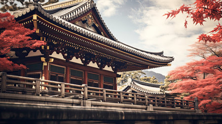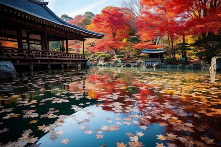 Beautiful Autumn Leaves in Kyoto Japan. generative AI.