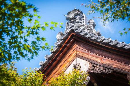 Close up view of Japanese style gable at Ryoanji Temple. Kyoto, Japan.