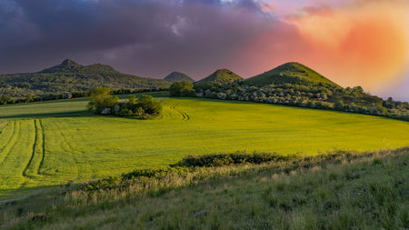 sunset of the Czech Central Mountain (Czech Republic) Europe.