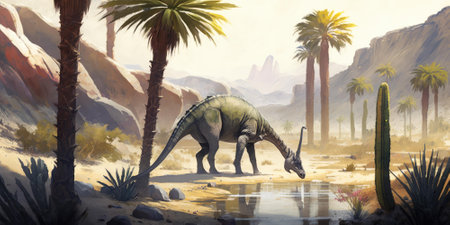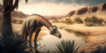 Prehistoric creature or dinosaur in the wild nature. Realistic style drawing. superlative generative AI image.