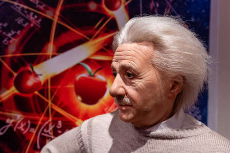 BANGKOK - JAN 29: A waxwork of Albert Einstein on display at Madame Tussauds on January 29, 2016 in Bangkok, Thailand. Madame Tussauds' newest branch hosts waxworks of numerous stars and celebrities