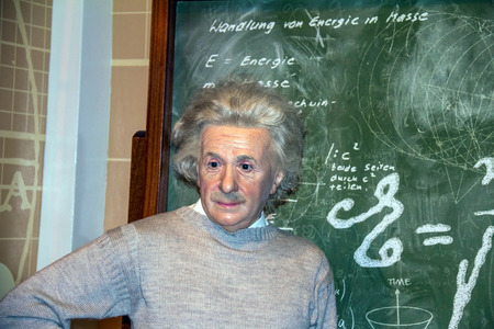 LONDON - JUNE 7, 2015: Albert Einstein, the scientist, at the Madame Tussauds museum in London. Marie Tussaud was born as Marie Grosholtz in 1761.