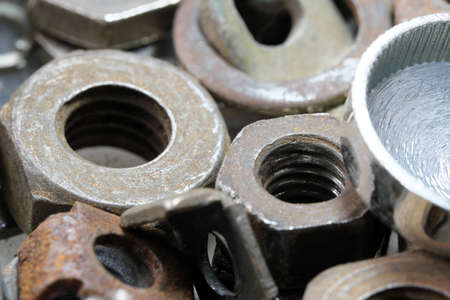 Old bolts, nuts, washers, screws close-up