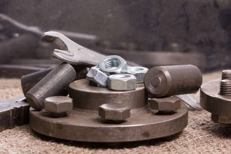 Various old metal iron nuts bolts nails wrenches, things of an engineer.