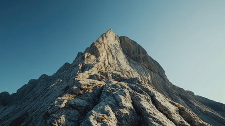 Top view of a dramatic mountain peak with a large, clear sky above, providing ample copy space for headlines, logos, or promotional text.