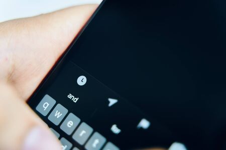 Plug in USB cord cable on smart phone, charging or and data transfer on mobile phone, close up