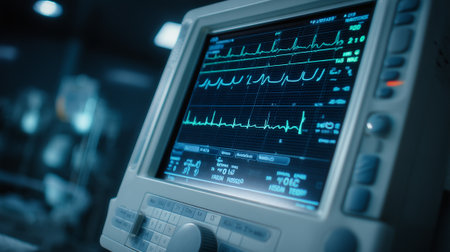 Advanced Electrocardiogram Display Showing Heart Rate Data for Patient Health Monitoring in Clinical Environment