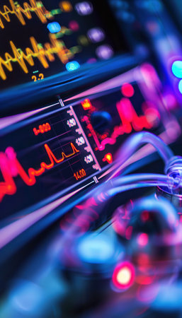 Advanced Medical Monitor Displaying Complex Patient Vital Signs Data in a Modern Healthcare Facility.