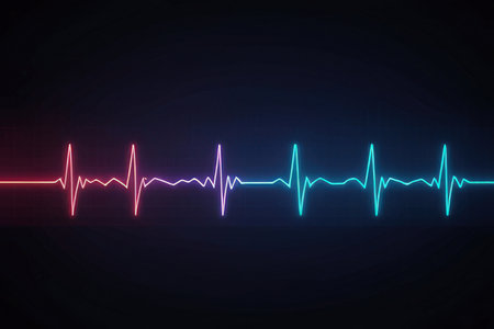 Illustration of a heart beat on a dark background with neon lights