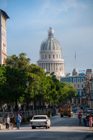 HAVANA, CUBA - JANUARY 16, 2017: Famous National Capitol (Capitolio Nacional) building. The National Capitol Building was the seat of government in Cuba until the Cuban in 1959.