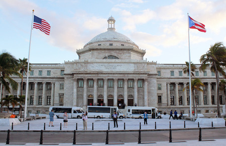Puerto Rico San Juan Capital District Capitol building. USA travel cruise destination in Latin America. Street view of famous landmark marble dome in city near Old San Juan.