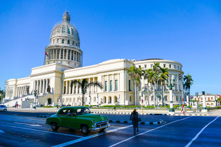 Havana, Cuba - January 22,2017: El Capitolio, or National Capitol Building in Havana, Cuba, was the seat of government in Cuba until after the Cuban Revolution in 1959, and is now home to the Cuban Academy of Sciences.