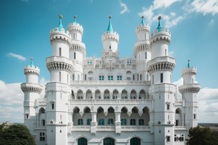 Enchanting White and Teal 5-Storey Castle: A Captivating Architectural Marvel (Aspect Ratio 3:2)
