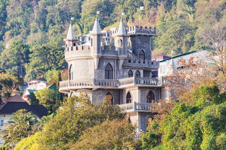 Sochi, Russia - October 12, 2020: View of the building on the mountain.