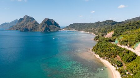 Corong Corong Beach, El Nido, Palawan, Philippines,view from above.High islands and lagoon with a coral reef.