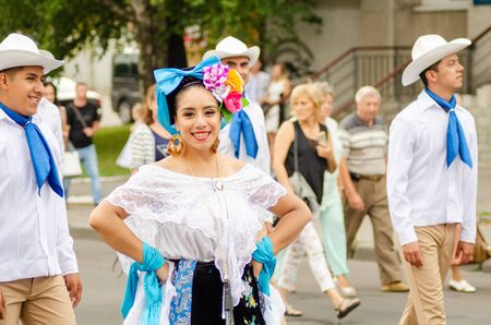 TIMISOARA, ROMANIA - JULY 8, 2018: Mexican dancers in traditional costume present at the international folk festival
