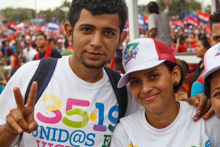 Managua, Nicaragua – July 19, 2016: People on street commemorating the 37th anniversary of victory of sandinist revolution