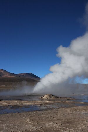 Geyser del Tatio, Atacama Desert, Chile: Geyser in the morning erupting activity in the Geysers del Tatio field in the Atacama Desert, Chile.