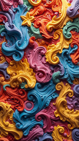 This image showcases a colorful decorative relief featuring intricate floral motifs and elegant details, perfect for artistic and architectural inspiration.